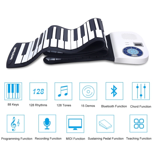 Built-in 128 kinds of tone, 128 kinds of rhythm, 15 demonstration songs