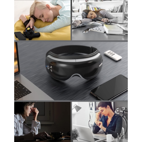 The eye massager uses heat and 2 motors to help achieve acupressure-like results. Acupressure stimulates which can effectively relax eye pain around the eyes, improve sleep quality.