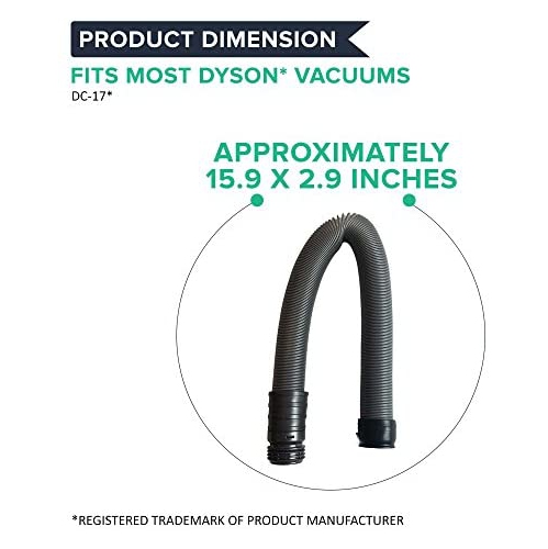 Replacement Dyson DC17 Replacement Suction and Complete Attachment Hose Assembly Fits All Dyson DC17 Upright Vacuum Cleaners including Dyson DC17 Animal, DC17 Asthma & Allergy, DC17 Total Clean Compare to Part # 911645-07, 911645-02, 911645-04, 911645-05 Stretches 6 Times Its Own Length / Includes Both Hose Cuffs Fully Assembled Designed & Engineered By Crucial Vacuum