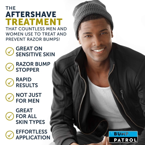 RAZOR BUMP TREATMENT - To prevent razor bumps, razor burn, and ingrown hair apply to skin after you shave, every time you shave and see results in just 48 hoursTRAVEL-FRIENDLY SIZE - Get rid of razor bumps and razor burn while traveling tooDERMATOLOGIST RECOMMENDED - Bump Patrol is dermatologist recommended for men and women and can be used on the face, neck, head, underarms, bikini area, legs, anywhere hair is removedINGROWN HAIR SOLUTION - Applying Bump Patrol Aftershave reduces the appearance of ingrown hairs, razor bumps, and razor burnGREAT FOR ALL SKIN TYPES - Patrol Grooming helps men present their best selves with bump, beard and skin products that are sulfate-free, paraben-free, and dye-free