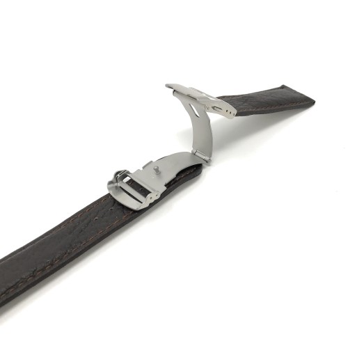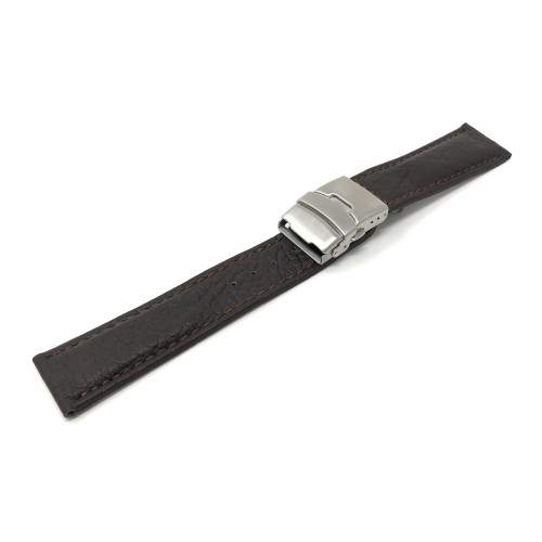 •22mm Brown Genuine Leather Watch Strap Band with Deployment Clasp Buckle