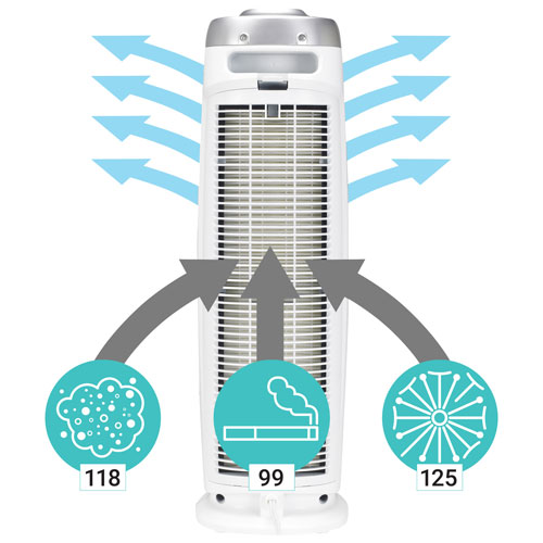 Designed for use in small and large rooms with a coverage area of 153 sq. ft.
