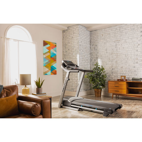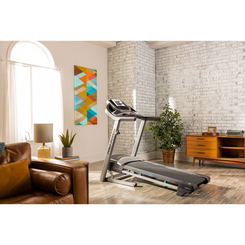 SpaceSaver design lets you fold the treadmill for compact storage when not in use