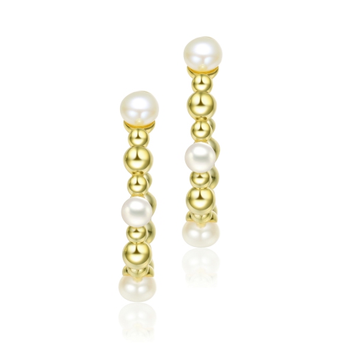Rozzato Sterling Silver Gold Plated Freshwater Pearl Hoop Earrings