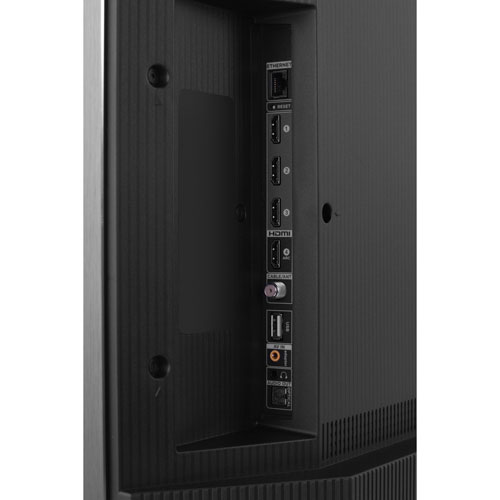 Four HDMI input ports (including 1 eARC), A/V composite video + L&R audio-in input, optical digital audio output, headphone jack, and USB media port let you connect multiple devices or accessories to the TV