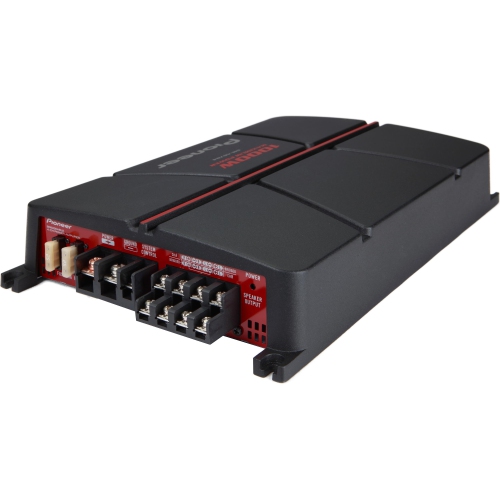 Class AB amp; Bridgeable; Auto signal sensing & turn on; Variable high-pass filter; Adjustable bass boost; Includes high-level input harness; 4 channels; 1,000W max; 95W x 4 @ 2ohm ; Dim: 2.36"H x 14"W x 8.46"D;