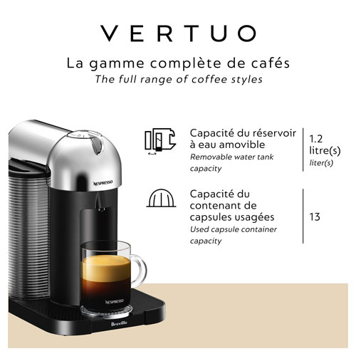 Supports 2 Nespresso capsule sizes: large for coffee and small for espresso, with capsule recognition via barcode reading for blend-specific brewing