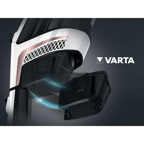 Rechargeable VARTA lithium-ion battery provides up to 60 minutes of runtime on a single charge