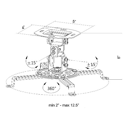 • Fits most projectors on the market. Distance between mounting holes on back of projector must be 12.5” or less