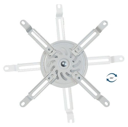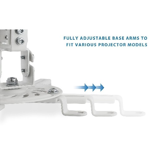 Important Note: As mentioned above the mounting arms for this projector mount have a maximum reach of 12.5”. Before purchasing, be sure to find the mounting holes on top of your projector and measure the distance between each one (especially the ones diagonal from one another). If all diagonals measure 12.5” or less then this mount will fit your projector.