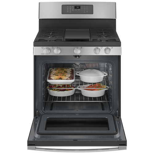 GE 30" 5.0 Cu. Ft. Fan Convection 5-Burner Freestanding Gas Air Fry Range (JCGB735SPSS) - Stainless