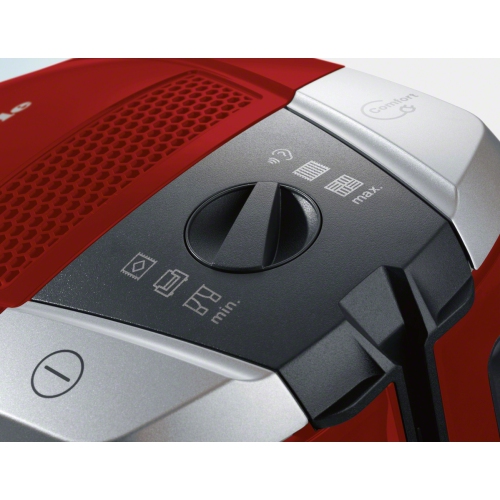 • Use the 6-step rotary dial to control the vacuum's 6 settings: curtains and lightweight fabrics; upholstery and cushions; thick-pile carpets, rugs, and runners; energy-saving and daily vacuuming with low noise level; low-pile carpets; as well as hard flooring and intensive cleaning of carpets