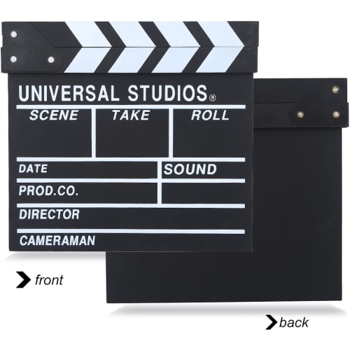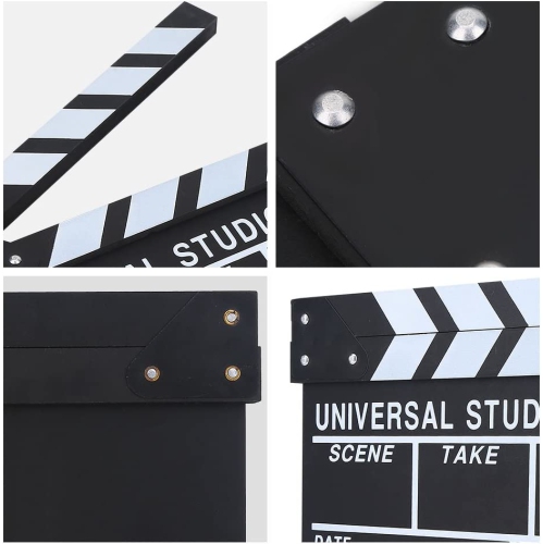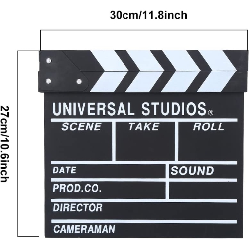 High Quality Clapboard---- 100% Brand new white and black wood handmade clapperboard. The size is about 30 x 27 x 1.5cm/11.8 x 10.6 x 0.6inch. Film shooting, MV shooting, home video, delayed photography, etc. Props necessary for director or film fans Exquisite Workmanship---- English version, beautiful and stable. Bolts in sticks can be adjusted. Pure manual craft makes you feel comfortable, easy and convenient to use Wide Application----This movie clapper board can be used as Shoot props/Advertisement /Home decoration/Cosplay/Background/ Desktop blackboard and etc.This is a great gift for film or movie making students, and can also be a nice item for video producers Can Write---- The directors clapboard has the characteristics of the most traditional wooden surface, which is suitable for using chalk. Users can write on it with chalk and wipe off the text with a wet cloth Good Decoration----This movie clapper board can also be used as a decoration for your room or studio to make