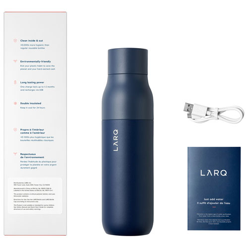 LARQ PureVis 740ml (25 oz.) Stainless Steel Water Bottle with Self-Cleaning Mode - Monaco Blue