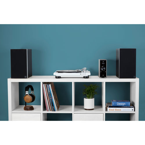 Built-in phono equalizer with on/off toggle, gives you the right amplification so you can enjoy listening to your vinyl records at the optimal power level