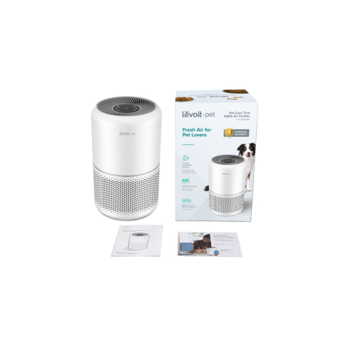 Enjoy fresh air with your furry friends with the Levoit Pet Care True HEPA Air Purifier. With its non-woven pre-filter, it captures more fur and pet dander. The activated carbon filter’s ARC Formula absorbs pet odors and chemically decomposes them to prevent second-hand pollution. The air purifier refreshes air 5 times per hour in rooms as large as 219 sq ft / 20 sq m with its aerodynamic air duct design and spiral airflow. The durable internal structure offers an increased lifespan, and the convenient Check Filter Indicator reminds you when it might be time for a new filter. Pet Friendly: The non-woven pre-filter captures more fur and pet dander, while the activated carbon filter’s ARC Formula absorbs pet odors and decomposes them to avoid second-hand pollution. Activate the Pet Lock to keep your settings from being changed by pets or children.