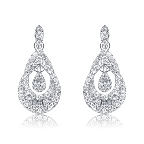 Rozzato Sterling Silver Cubic Zirconia Double Pear Drop Earrings