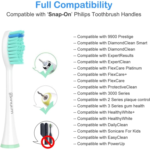 Fully Compatible - Senyum toothbrush replacement heads are compatible with philips sonicare toothbrush head electric handles. (CLICK-ON SYSTEM)