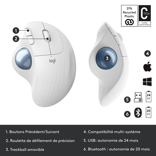 Wireless trackball mouse connects via USB Unifying receiver or Bluetooth Low Energy within a range of 10 metres (33 feet)