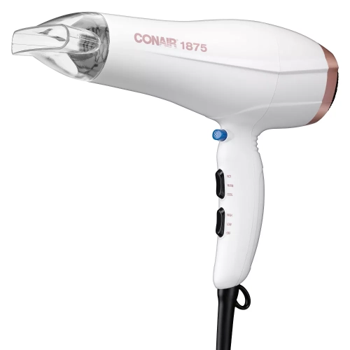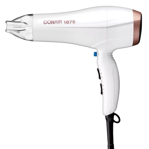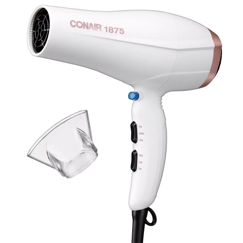 2x Ceramic Technology. Powerful and fast drying. Conditioning ions. 3 heats/2 speeds. Get it all with the Double Ceramic Dryer from Conair.® This styling essential is your go-to for salon results at home made easy. Specially designed with double the ceramic technology, it dries fast with less damage. You get greater heat protection and healthy-looking hair. Infrared heat dries your hair evenly, thoroughly, and gently while 1875 watts gives you quick, powerful salon performance. Fed up with frizz? Win the battle with natural conditioning ions that banish frizz and boost shine. Choose from 3 heats/2 speed settings for styling customized for your hair type. Snap on the concentrator to focus airflow for smooth and sleek results. Once your style is just right, use the cool shot to lock in your look. There's even a removable filter to make it easy to prevent lint buildup and extend motor life. Perfect for all hair types, the Double Ceramic Dryer from Conair® spares you the trip to the salon with professional technology that's simple to use. 1875 watts provides power to spare, and the wide range of heat and speed settings makes personalized styling easy. The combination of 2x Ceramic Technology and conditioning ions reduces heat damage, frizz, and flyaways. You get beautiful, frizz-free body for a silky, shiny, healthy-looking finish. Focus airflow with the concentrator for pinpoint styling that leaves hair smooth and sleek. Dry hair like a pro-quickly and easily-with this versatile and powerful styling essential for the ultimate in luxuriously sleek and shiny looks from Conair.® Electrical Plug Power Source Product is powered by electrical outlet