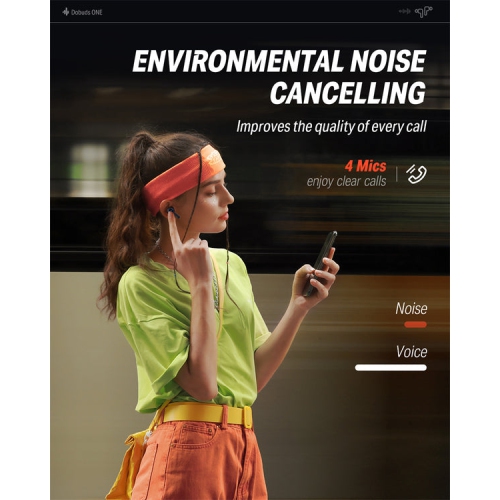 Using dual-mic Beamforming ENC wind-resistant call noise reduction technology. It avoids windward noise when combined with the anti-noise construction on the outside of the earphones and the operation of a unique app, resulting in a clear and noise-free call.