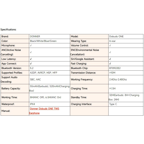 Type-C rapid charging technology charges the device in 10 minutes and allows it to play for 2 hours. Single-ear battery life is more than 8 hours (ANC off), and the charging case provides a full cycle of charge three times, for a total of 32 hours.