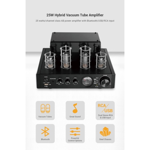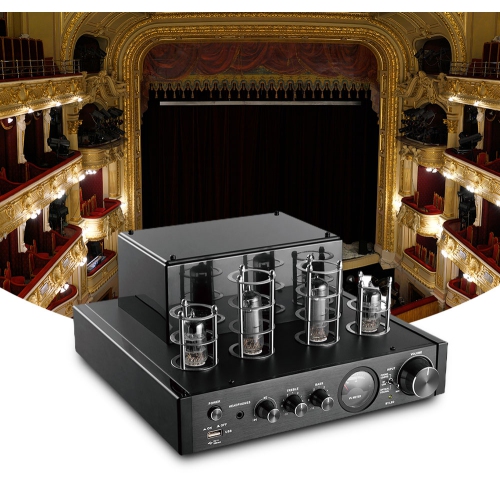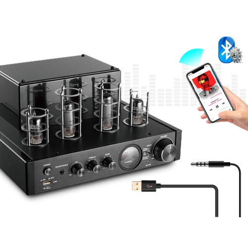 The Tube Amplifier can connected with your turntable, CD player, TV, Smart phone and tablet via the two RCA source inputs or Bluetooth, It also has an headphone output and an USB input for direct audio file playback from your USB drive on the front panel.