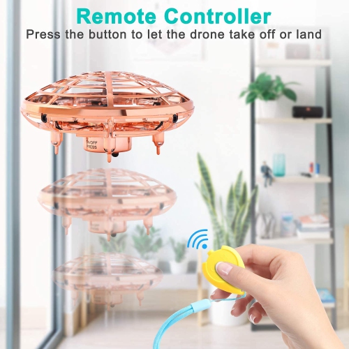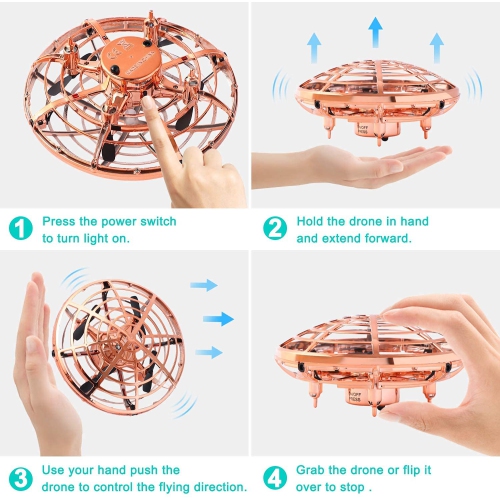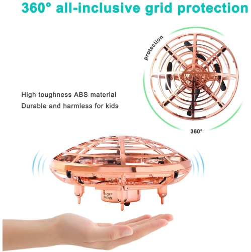 More Fun for Kids This small flying ball is light and small in size, suitable for children to play with. Just need to throw it in the air after turn on, the levitation drone will fly itself, (the indicator light begins to turn green flashing means it is ready), and flip the UFO over and it will stop flying automatically. Cool led light, avant-garde style, easy using make the drone popular among teenagers