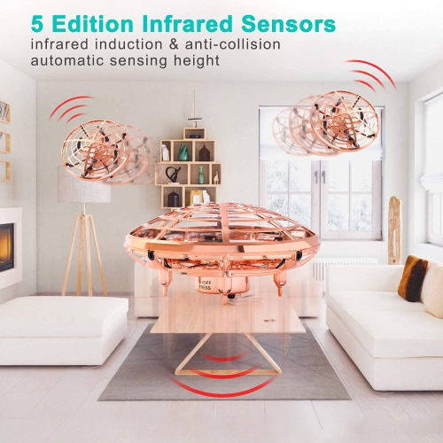 Safe Material This flying toy is made of non-toxic and high-grade ABS material which is lightweight, flexible and collision resistance, 5 Infrared Sensors will move away intelligently when the drone toy detects someone or something else and won't cause harm to kids