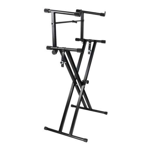 2 / Second Tiers Double-Brace X Keyboard Stand + 2nd Detachable Tier Heavy Duty Music Musical Electronic Piano Stands with Locking Straps