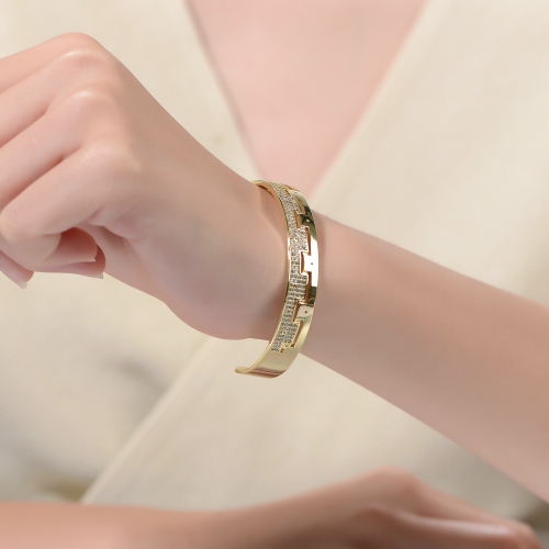 Rozzato Gold Plated With Cubic Zirconias Cuff Bracelet