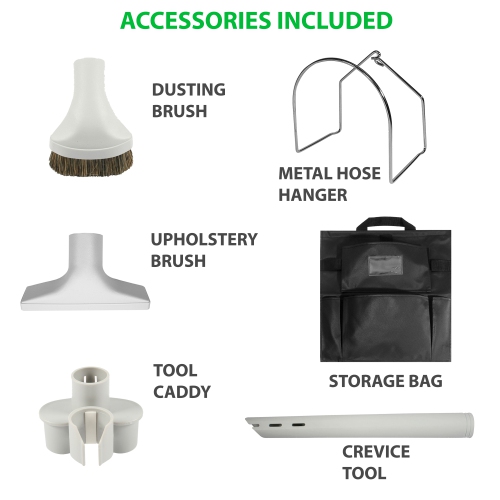 Air Driven Turbine Brush - Hardwood Ceramic Floor Nozzle with Natural Horsehair Bristles - Upholstery Nozzle with Slide-on Natural Horse Hair Brush - Crevice Tool - Dust Brush with Natural Horsehair - Hose-Rack.