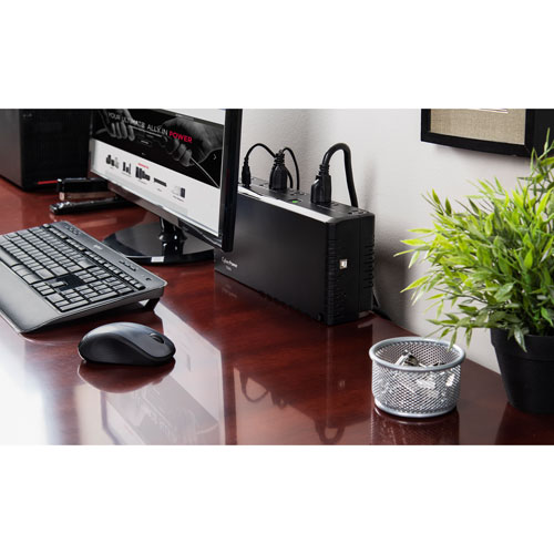 750VA/350W standby UPS features 8 surge protected outlets, of which 5 are connected to the battery backup