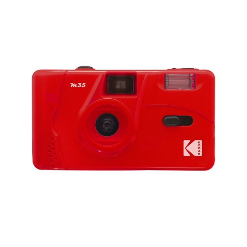 Capture the memories with this easy to use reusable 35mm film camera. The M35 has fixed focus lens, manual film winding and rewinding, and a switch to turn flash On/Off. Kodak M35 with its fixed-focus wide-angle lens has a powerful flash and is easy to load the film roll. Uses 35mm format film and offers a focal length of 31mm. This camera runs on a single AAA battery (not included) and features an optical viewfinder, f/10 aperture and 1/120 second shutter speed.