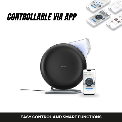 Breathe deep with the Atem purifier by your side, which delivers a steady stream of up to 99% purified air. It’s easy to control manually, and you can download the app to customize the speed settings and features through your mobile device. Purifies the air in your personal breathing zone. HyperHEPA filtration system captures pollutants as small as 0.003 microns. Touch-point controls offer 3 fan speeds. Bluetooth technology lets you control the air purifier via a downloadable app on your smartphone or tablet. Whisper-quiet design helps you maintain a peaceful home or office. Purifier is easily portable, so you can enjoy purified air wherever you go. UL listed. Backed by the manufacturer’s 3-year limited warranty.