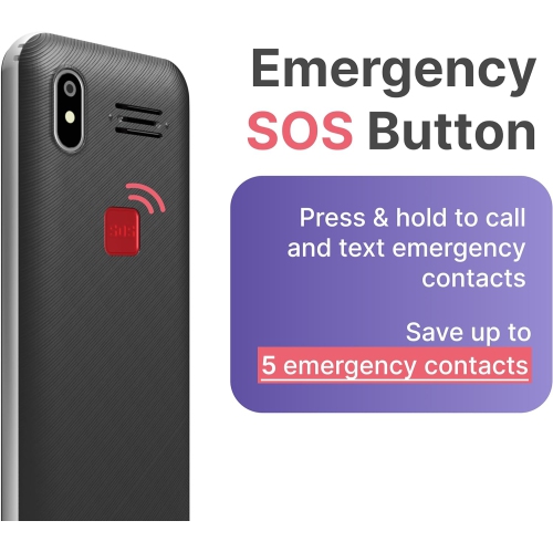 EMERGENCY SOS BUTTON to keep you or your loved ones safe in case of an emergency. The SOS button allows up to 5 contacts. When the SOS button is pushed and held, it will call each emergency contact one by one and send out a text message alerting the contacts of an emergency.