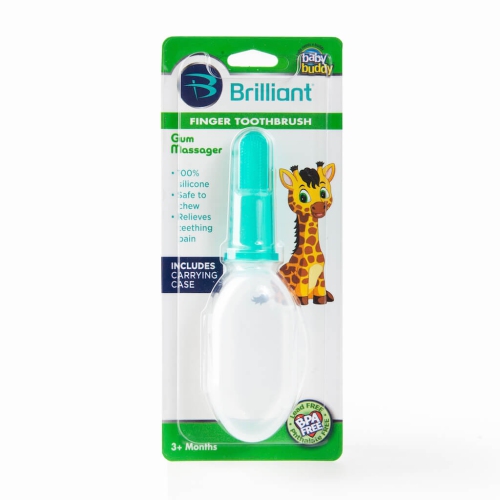 Nurture a lifetime of good oral habits with proactive oral care. Safely brush new baby's teeth and massage tender gums with Baby Buddy's Silicone Finger Toothbrush. Stage 2 of a complete, 6-Stage Oral Care System, these innovative care products grow with your child from birth to age 12. The first 4 stages are designed to take care of budding baby teeth from the start with state of the art, safe and soft products that children love to chew on. Stages 5 and 6 progress to distinctive toothbrushes for ages 4 months to 12 years that easily clean those hard-to-reach places where food and plaque can build up and cause cavities and other oral problems. Stage 2 Silicone Finger Toothbrush fits snugly over your finger to softly clean, massage and soothe baby's gums and teeth. The Finger Toothbrush is the second step in taking care of precious teeth by providing optimal cleaning power and minimizing possible damage to gums and teeth. The Silicone Finger Toothbrush, made of 100% FDA approved food grade silicone, is BPA free and dishwasher safe. Baby Buddy's Silicone Finger Toothbrush offers an easy, portable solution for babies aged 3 months and older. Properly cleaning teeth and gums helps remove sugars and bacteria that can lead to future decay. Give your child the gift of a lifetime of good oral care habits with the innovative Stage 2 Silicone Finger Toothbrush by Baby Buddy. Check out our other Baby Buddy products because Every Baby Needs a Buddy.