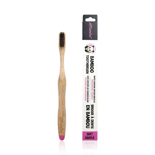 Made from organically grown bamboo, our eco-friendly sustainable bamboo toothbrushes are licensed by Health Canada.The BPA-free, vegan, bristles are infused with premium activated white charcoal (Binchotan from Japan) and have powerful antibacterial properties that cleans, whitens and brightens your teeth naturally and guarantees you great oral hygiene. Each toothbrush is individually sealed in compostable PLA wrapper inside our box packaging as an additional safety and hygiene measure.Stylish contoured smooth handle provides maximum grip comfort, the head is favourably sized and designed for optimal tooth coverage.