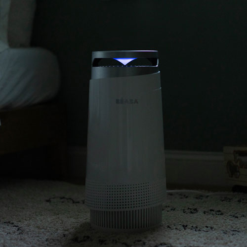Four-stage filtration features a pre-filter, true HEPA filter, active carbon filter, and anti-microbial layer for complete purification