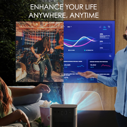 - Take It Outdoors: Jazz up your outdoor evening screenings with incredible ease. The Halo is equipped with a strong built-in battery, providing you big-screen entertainment for the length of a typical movie. Enjoy a 150" view filled with ample brightness and contrast in dark environments and a superb 60''-80'' view during the day under natural light.
