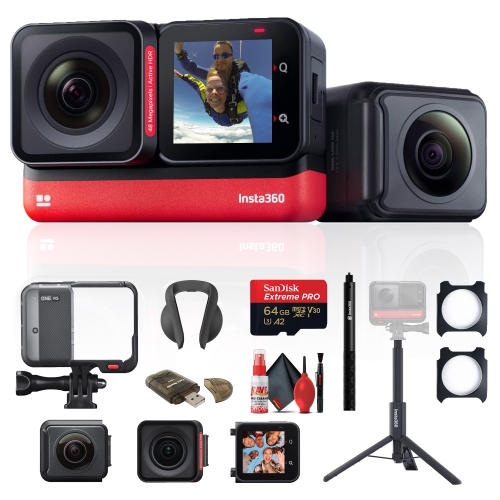 The Insta360 ONE RS Twin Edition Camera is one of the key configurations of the modular ONE RS action camera system. The Twin Edition includes the Core module, 4K Boost Mod, the 360 Mod, and the necessary Battery Base that holds the modules together. When assembled with the 4K Boost Lens, the ONE RS can shoot 4K60 wide-angle action video and 48MP photos. With the 360 Lens, the ONE RS can shoot 5.7K 360� footage with creative effects like the Invisible Selfie Stick and 360� reframing. Both lenses have FlowState stabilization and Horizon Lock. A 1" wide-angle lens, which captures 5.3K resolution video, is also available separately and can be swapped in.