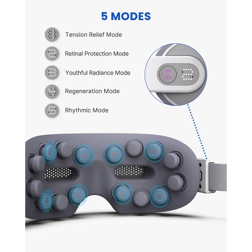 Our rhythm eye mask is equipped with 5 massage modes, from mode 1 to mode 5, the intensity gradually increases. The rhythmic mode will vibrate with the beat of music. You can use bluetooth connection phone to synchronize your own music, enjoy different rhythmic knead methods and the audio-resonance eye care. 〖Notes: If you feel that the vibration of rhythmic mode is weaker, pls try to increase the music volume.
