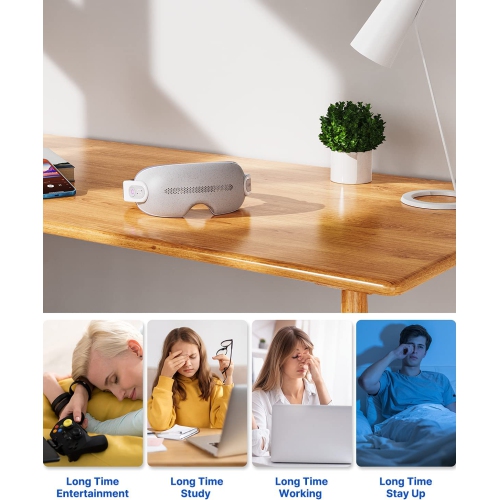 With vision windows and one-button operation, you can enjoy entertainment, eat something, keep safety and balance while relaxing the eyes. The head strap can be easily adjusted to fit all teenagers and adults. In addition, our engineers reduce its weight by 30%, so you can easily take the eye mask to the office, on an airplane, or on travel.
