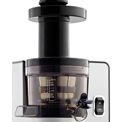 43 RPM, dual-edge single auger processes tough fruits and vegetables with ease, offering a better yield than a centrifugal juicer