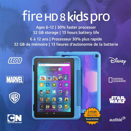 Screen made with strengthened aluminosilicate glass. Plus, every Fire Kids tablet comes with a sturdy Kid-Proof Case designed to protect against drops and bumps