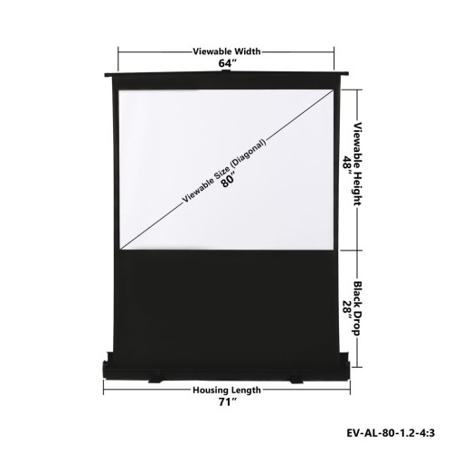 This 80" portable projector screen provides a 4:3 aspect ratio and ultra-wide 170-degree viewing angle, creating the ideal viewing experience for streaming movies