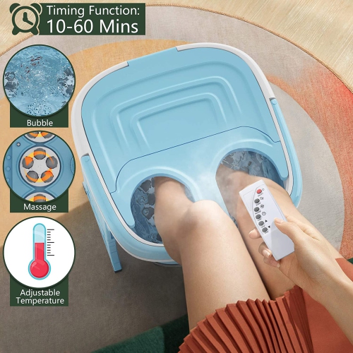 After a day of work or study, enjoying a perfect foot massage can effectively relieve stress and fatigue. Therefore, we prepared this foot bath massager for you to help improve your quality of life. It can effectively promote blood circulation, improve metabolism through high-frequency vibration massage, hot water waves and relaxation of oxygenated bubble. The smart remote control to allow you to easily adjust settings without repeatedly bending over. Through the timing function and temperature display, the user can adjust the water temperature to the most suitable one. And the rapid heating design can quickly raise the water temperature to the temperature you set.