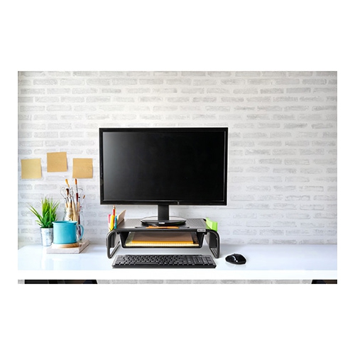 Protective non-slip feet keep the stand firmly in place and prevent scuff marks. The steel construction and durable powder-coated finish ensure that this monitor stand will provide organization and ergonomic comfort for years.