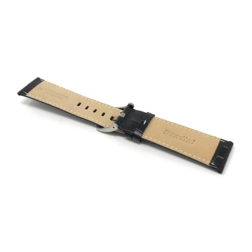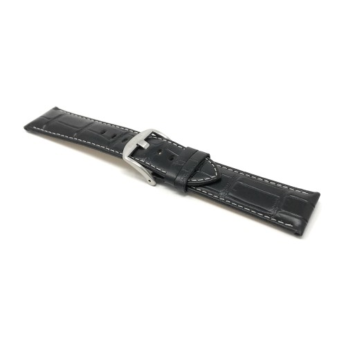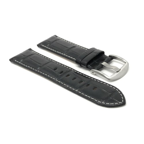 •20mm, Mens', Crocodile Style, Genuine Leather Watch Band Strap, White StitchingWhite Stitching