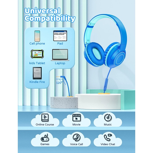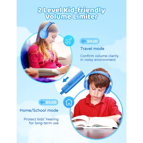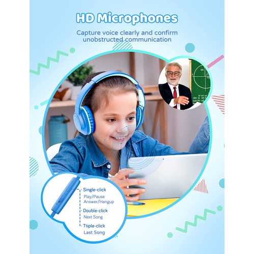 ☊ [Volume Limit for Hearing protection]: Kids Friendly Headphones built-in two levels of volume limit allow kids to cap sound clearly and limit volume to 85dB to prevent damages to kid's ears in daily life, and also allow to reach 94dB for clearer but still safe sound under the condition of airplane rumbles, car noises etc. ☊ [HD Microphone & Multifunctional Button]: Stereo kids headphones wired with microphone is for you to enjoy excellent sound effect; Multi-function button on the audio cable- single click to play, pause, answer, hang up; double click to switch to the next song, and triple clicks to switch to the previous song. ☊ [Adjustable & Portable Design]: Adjustable headband fits for different size of head and foldable and compact kids headphones take up minimum space for easy storage in school bags, suitcases, or backpacks, convenient for carrying and storage. ☊ [Soft Over-Ear Earmuffs & Buffered Headband]: The noise cancelling headphones for kids with ultra-soft earmuff
